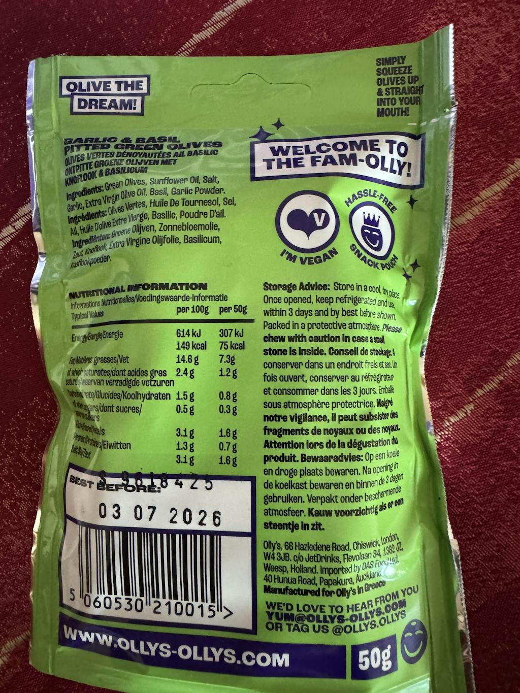 Hi, We came across your Basil flavoured olives on a Ryanair flight. They were delicious. So unusual with distinct fresh flavour of Basil. We immediately searched for them on line on our return and ordered a twelve pack for Christmas. Unfortunately, they were just not like the ones we bought on the flight. The olives in the first pack were a little dry and had no discernible taste of basil. We’ve tried several more over Christmas and the same result. No fresh taste of Basil. So disappointing. Something has gone wrong in the production or Basil ingredient. All the packs seem to have the same batch number. We propose to return the remaining packs at our expense for you to check and assess. Can you please advise if we should use the Hazledene Road address in Chiswick. Hope to hear from you soon.