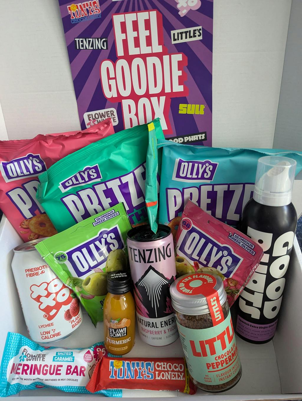 The Goodie Box Was Jam Packed With A Wide Variety Of Products With Something To Suit Everyone In My Family And Appeals To A Lot Of Different Tastes. Was A Big Hit Sharing With My Family Over The Christmas Period. Everyone Loves The Pretzels My Dad Tried The Ginger Shot And My Sister Claimed The Olives. Well Worth The Money And A Bargain For Just Paying The Postage.